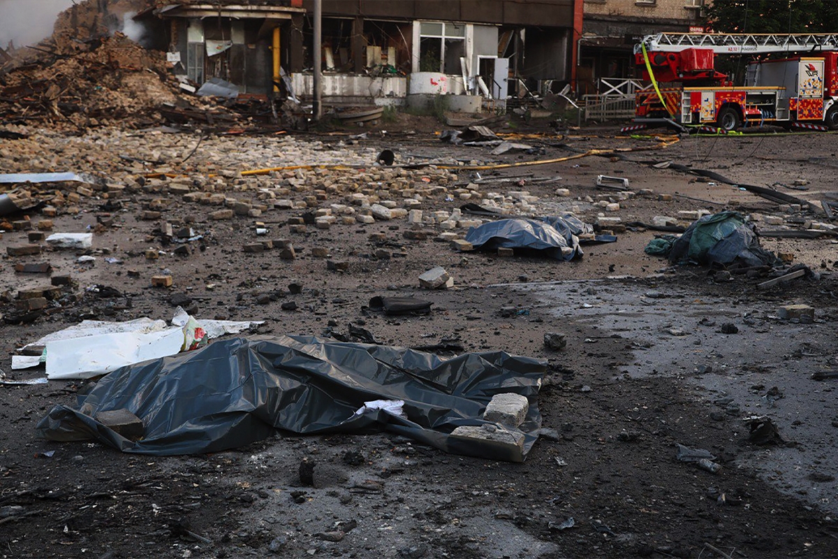 وأضاف في خطابه المسائي المصور «من قتلوا في كييف كانوا من فرق الإنقاذ التي وصلت لموقع ضربة أولى وللأسف قتلوا مع تكرار الضربة الروسية».