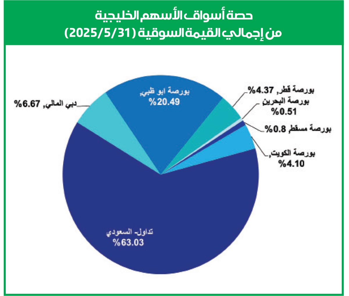 وحسب تقرير صادر عن الشركة الكويتية للاستثمار، تباين أداء أسواق الأسهم الخليجية خلال مايو 2025، وسط مكاسب متوسطة إلى هامشية لمعظمها، بينما استمر الضعف في سوق الأسهم السعودي، حيث سجل مؤشر تداول خسارة خلال الشهر نسبتها 5.84%، واتت هذه الخسارة للشهر الرابع على التوالي، بالرغم من النتائج المالية الإيجابية للشركات المدرجة، إذ ارتفع صافي أرباحها للربع الأول من عام 2025 (بدون احتساب صافي أرباح أرامكو) بنسبة 22% لتسجل 40.5 مليار ر.س، بالتالي تعمّقت خسائر مؤشر تداول السعودي في أول 5 أشهر من السنة إلى 8.7%، وبالتزامن مع ضعف في السيولة نتيجة إصدارات البنوك من الصكوك واكتتاب المستثمرين فيها للاستفادة من عوائدها المغرية، إضافة الى الاكتتابات العامة على بعض الشركات.
