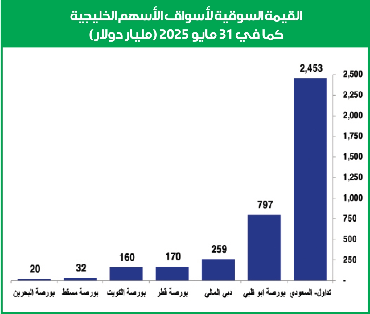 القيمة الرأسمالية السوقية لأسواق الأسهم الخليجية