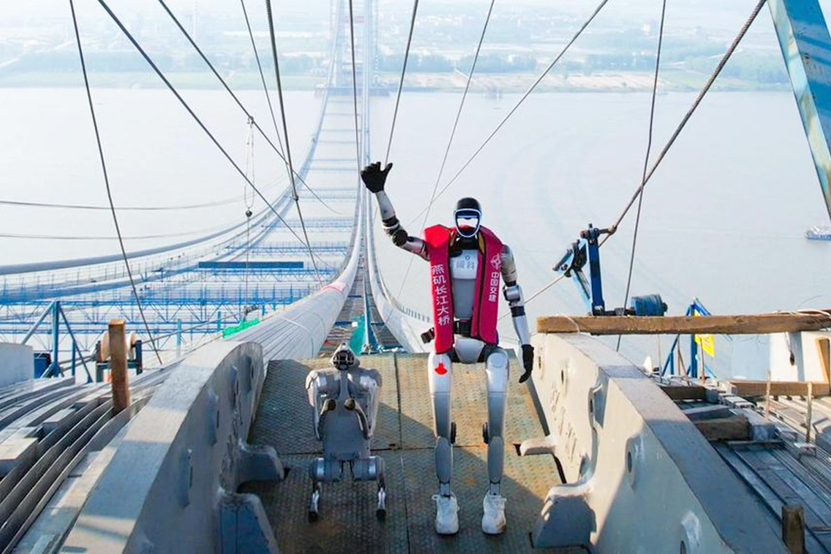 تسلق روبوت وكلب روبوت أخيراً جسر يانجي على نهر اليانغتسي في وسط الصين، ليشاركا في تحدي المشي على أطول «طريق قطط» في العالم.