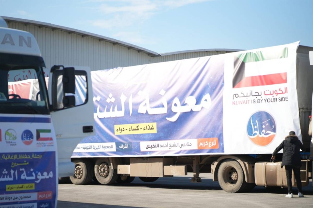 سيرت الجمعية الخيرية الكويتية «حفاظ» شاحنات إغاثة شتوية إلى مدينة الريحانية السورية، تضمنت مواد غذائية وأدوات تدفئة ضمن مشروعها المعونة الشتوية، بمشاركة وفد من الجمعية ضم نائب رئيس مجلس الإدارة أحمد المرشد، ومسؤول العلاقات العامة نايف الشرهان، والشيخ أحمد النفيس.