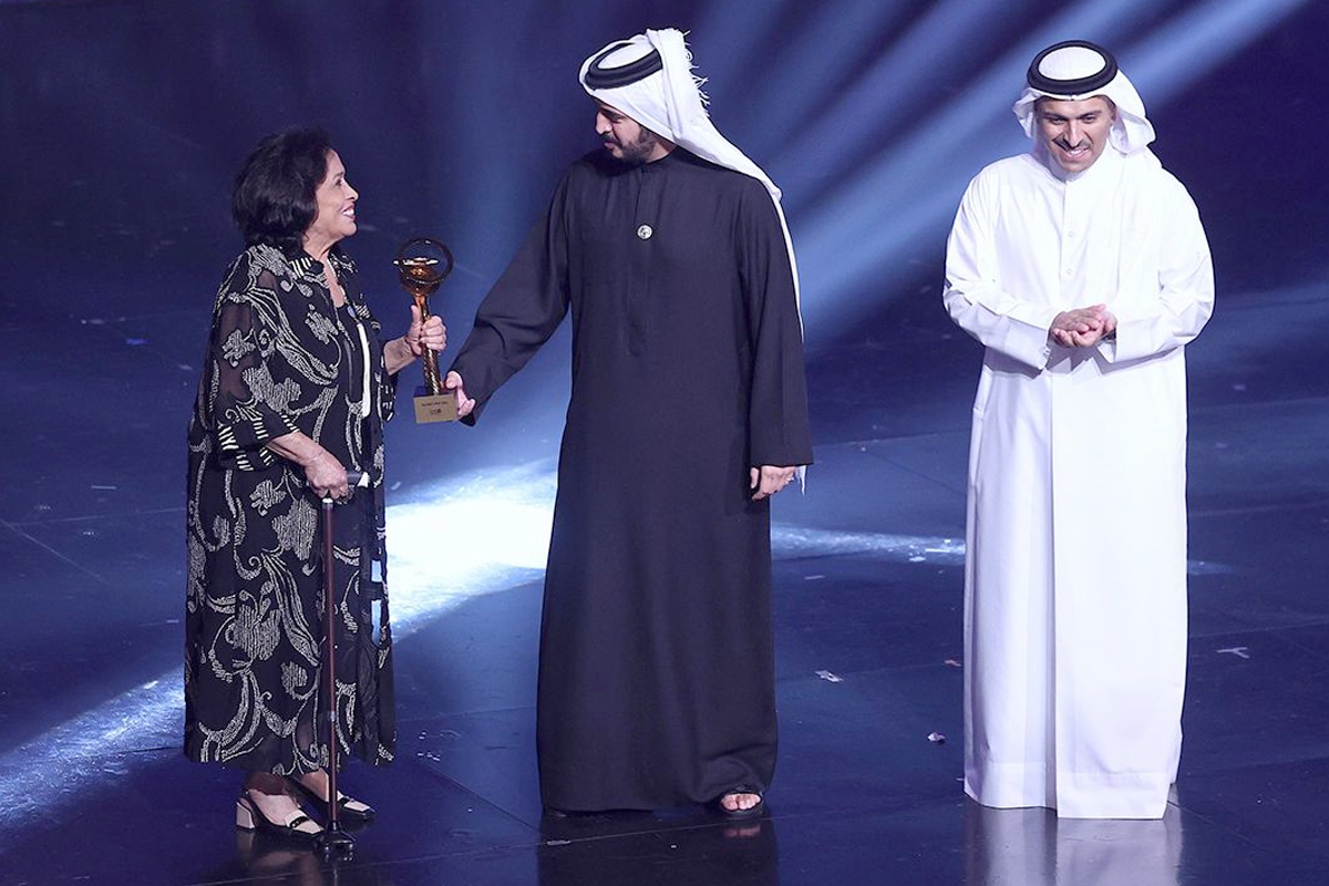 وسلَّم راعي الحفل الشيخ خالد بن حمد جائزة الدانة التقديرية لكل من الفنانة حياة الفهد، والفنانة مريم الصالح، والفنان عبدالله ملك.