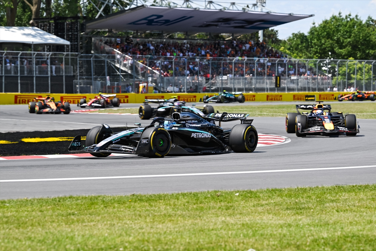 فاز البريطاني جورج راسل، سائق مرسيدس، بسباق جائزة كندا الكبرى، الجولة العاشرة من بطولة العالم للفورمولا واحد، والذي شهد أول حادث تصادم بين سائقَي ماكلارين قبل بضع لفات من النهاية، الأحد، على حلبة جيل فيلنوف في مونتريال.