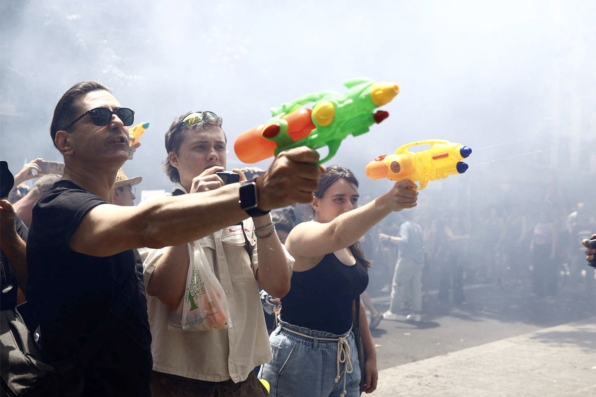 قام محتجون باستهداف سياح، لم يكونوا على دراية بما يجري، بمسدسات مياه في برشلونة وبجزيرة مايوركا الإسبانية، أمس الأول، في وقت نظم متظاهرون مسيرات للمطالبة بإعادة النظر في نموذج اقتصادي يرون أنه يتسبَّب في أزمة سكنية ويمحو الطابع الأصيل لمدنهم.
