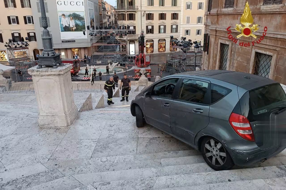أفادت فِرقة الإطفاء الإيطالية في بيان أنّ سيارة «مرسيدس بنز» رمادية من طراز «A-Class» علقت في منتصف السلالم، التي يعود تاريخها إلى القرن الـ18 عند حوالي الساعة الرابعة صباحًا، الثلاثاء.