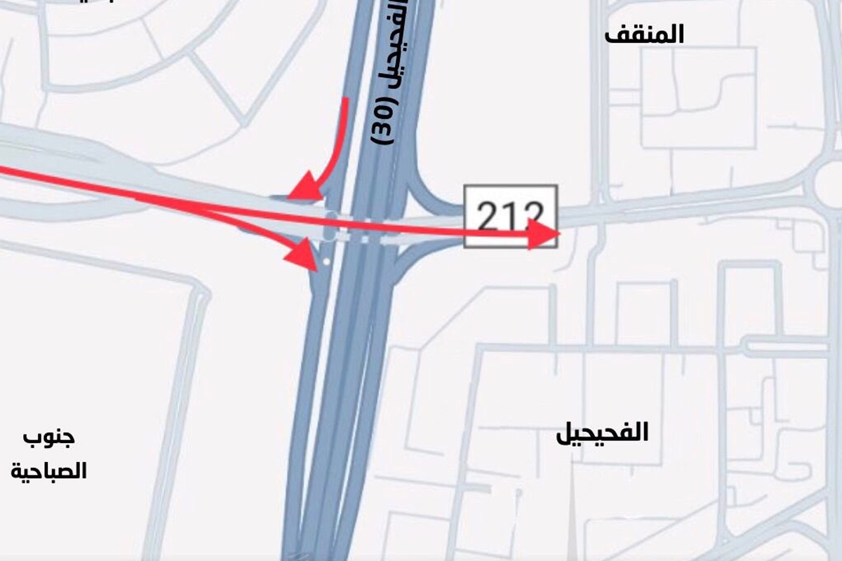 أعلنت الهيئة العامة للطرق والنقل البري إغلاق تقاطع نادي الفحيحيل القادم من الصباحية والمتجه إلى دوار الفحيحيل، وإغلاق القادم من طريق 30 اتجاه الكويت ومتجه إلى الصباحية، من فجر اليوم الأحد ولمدة 10 أيام حتى تاريخ 9/7/2025.