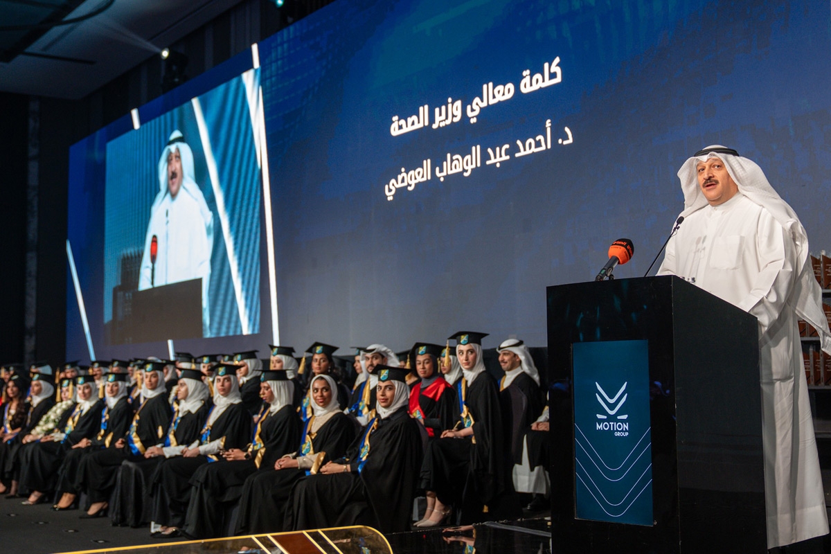 وقال العوضي، في كلمة خلال حفل تخرج طلبة كلية الطب بجامعة الكويت دفعة 2025، «إننا نحتفل اليوم ببدايات جديدة ونفوس اختارت أن تكرس عمرها لخدمة الإنسان، وأن تجعل من العلم رسالة ومن الرحمة منهجاً»، وأكد أن الخريجين «فخر لذويهم وعز لوطنهم ونواة لمرحلة تحمل في طياتها مسؤولية نبيلة».