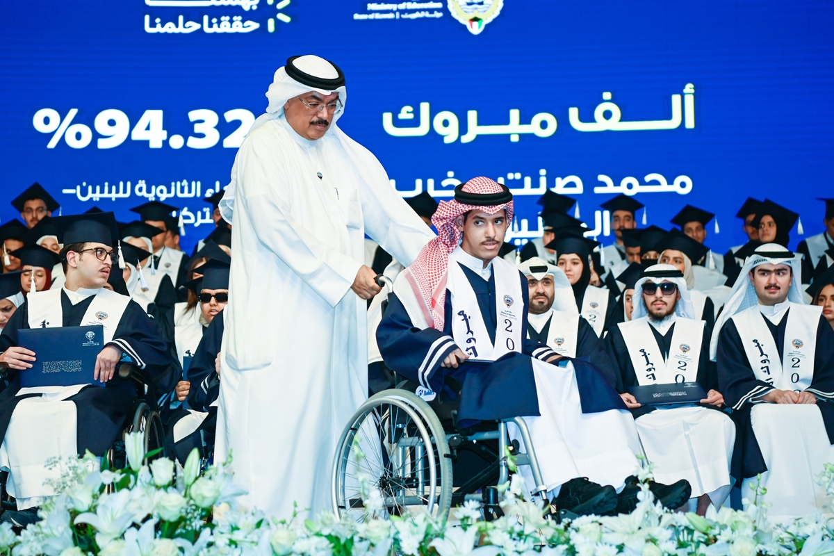 واختتم الوزير كلمته برسالة إلى المتفوقين وأولياء أمورهم قائلاً: «لقد تحقق هذا الإنجاز الكبير بفضل الله أولاً، ثم بفضل الدعم المتواصل من قيادتنا السياسية الرشيدة التي لم تدّخر وسعاً في رعاية التعليم وأبنائه، وإنني في هذه المناسبة العزيزة أنقل لكم جميعاً تحيات وتهاني سمو أمير البلاد الشيخ مشعل الأحمد، وسمو ولي عهده الأمين الشيخ صباح الخالد، ورئيس مجلس الوزراء سمو الشيخ أحمد العبدالله، تقديراً لهذا الإنجاز الذي تحقق بجدارتكم وتفوقكم، وتأكيداً على أنكم أمل الكويت وركائز مستقبلها».