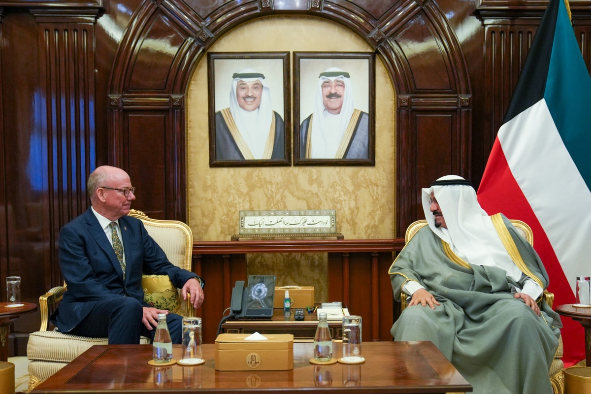 استقبل رئيس مجلس الوزراء سمو الشيخ أحمد العبدالله، في قصر بيان اليوم، نائب رئيس مجلس إدارة مؤسسة الملك في المملكة المتحدة، مايكل جاري، والمدير التنفيذي للتعليم بالمؤسسة، د. سيمون سادينسكي، وذلك بمناسبة زيارتهما للبلاد.