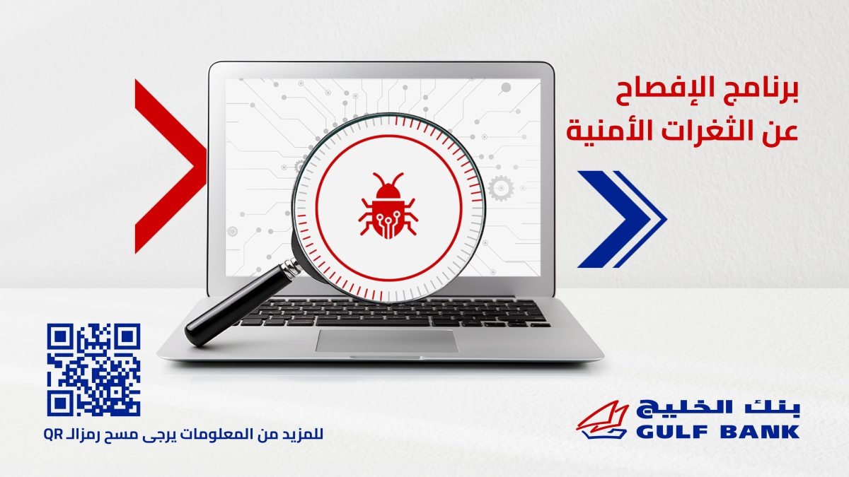 ضمن رؤيته طويلة المدى لتعزيز الأمن السيبراني، وفي إطار التزامه الراسخ بحماية بيانات عملائه وأنظمته الرقمية من التهديدات المحتملة، يُطلق بنك الخليج برنامج الإفصاح عن الثغرات الأمنية (VDP and Bug Bounty programme)، الذي يهدف إلى إشراك المجتمع الأمني، من خبراء ومختصين وهاكرز أخلاقيين، في دعم جهود البنك لاكتشاف ومعالجة الثغرات الأمنية التي قد تؤثر على أنظمة وخدمات البنك، ليُمكِّن البنك من التعامل معها قبل أن تُستغل من قبل أطراف غير مصرح لها.