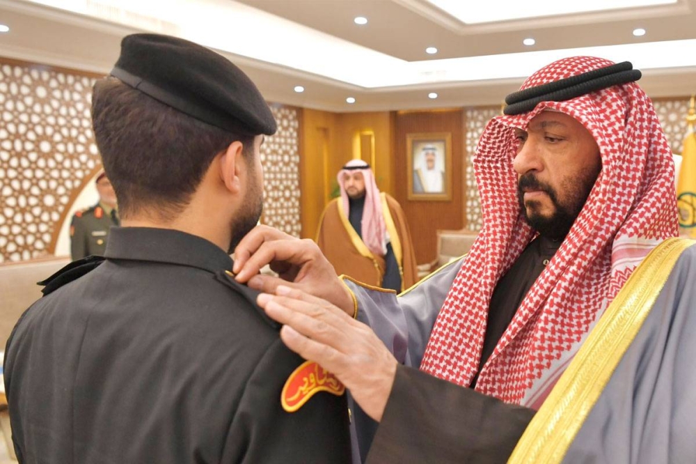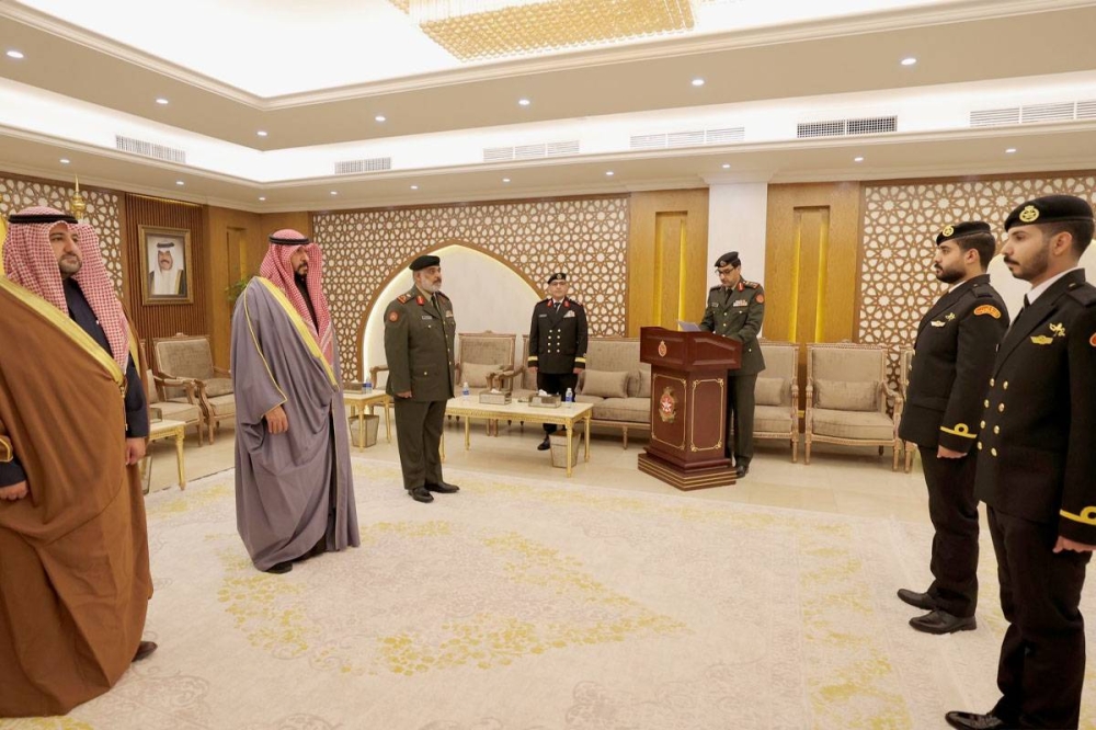 ودعاهم إلى الحرص «على أن تكونوا قدوةً في تعاملكم ومثالاً يحتذى في أقوالكم وتصرفاتكم، وتفانوا في خدمة الوطن وحمايته والذود عن ترابه، وأسأل الله عز وجل أن يوفقكم إلى تحقيق ما نتطلع إليه جميعاً من تطور وتقدم وازدهار لقواتنا المسلحة كما أسأله سبحانه أن يديم نعمة الأمن والأمان والعزة والرفعة على بلدنا الحبيب، في ظل القيادة الحكيمة لصاحب السمو أمير البلاد القائد الأعلى للقوات المسلحة الشيخ نواف الأحمد وسمو ولي عهده الأمين الشيخ مشعل الأحمد».
