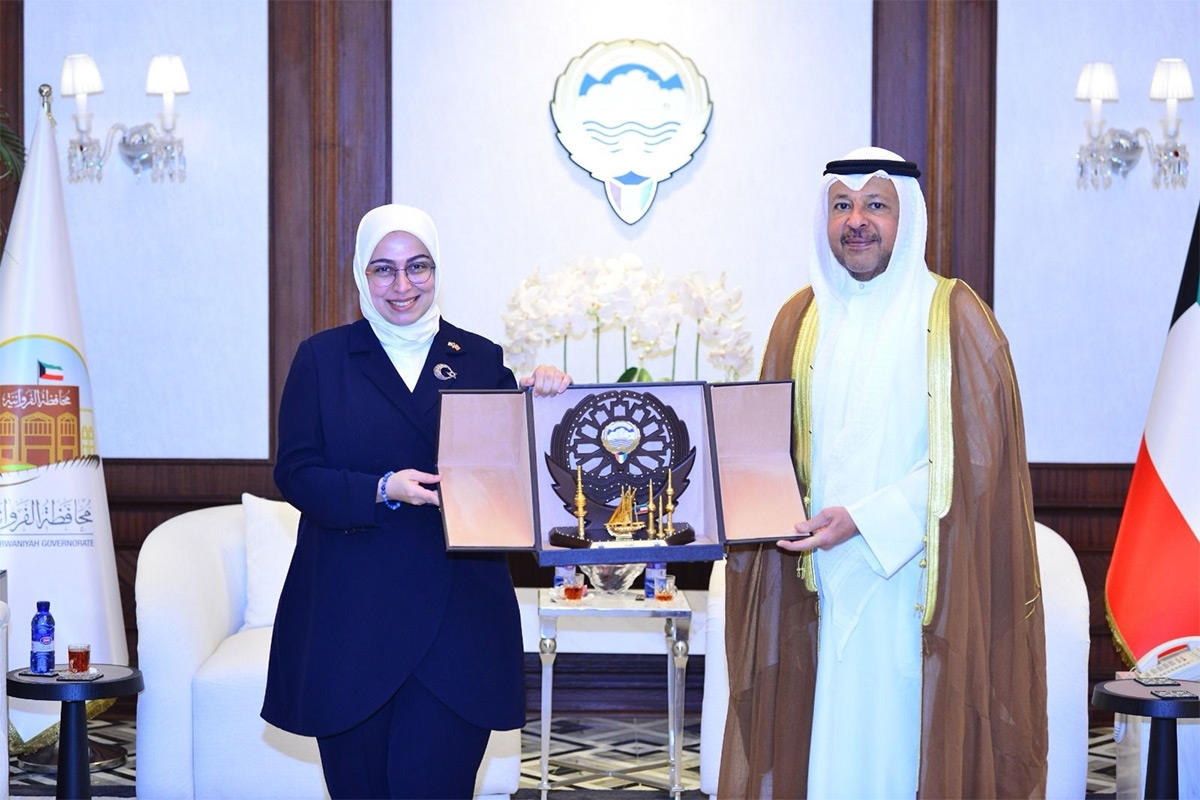 استقبل محافظ الفروانية، الشيخ عذبي الناصر، اليوم، في مكتبه بديوان عام المحافظة، سفيرة تركيا لدى الكويت، طوبى نور سونمز، في إطار تعزيز العلاقات الثنائية المشتركة بين البلدين.