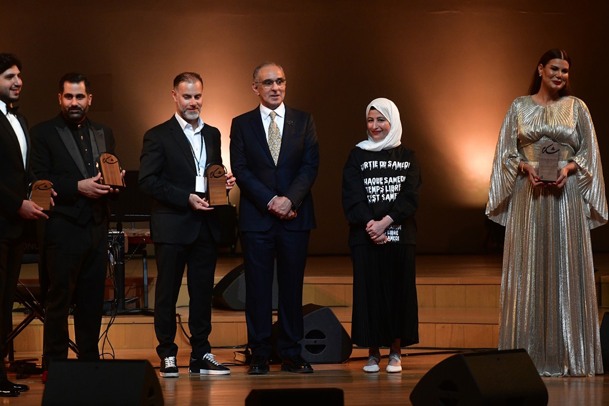 وقُبيل انطلاق الحفل، كرَّم د. الجسار، والأمينة العامة المساعدة لقطاع الثقافة في المجلس عائشة المحمود، الفرقة الموسيقية والفنانين المشاركين.