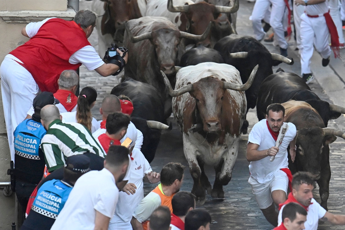 أصيب 6 أشخاص اليوم، عند اقتياد ثيران عبر الشوارع الضيقة بمدينة بامبلونا في إسبانيا للمرة السابعة هذا الأسبوع، في حين تقترب نسخة العام الحالي من مهرجان سان فيرمين الشهير من نهايتها.