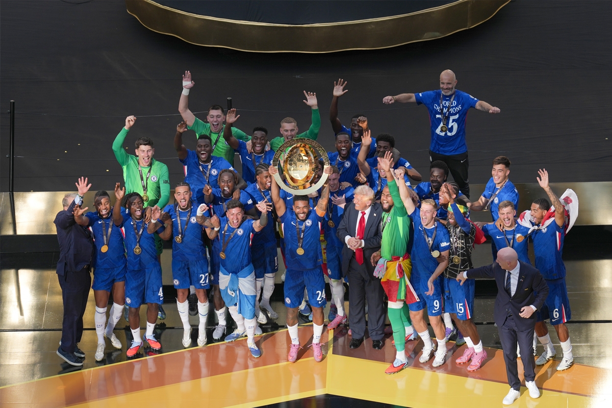 توج تشلسي الإنكليزي بلقب النسخة الأولى من مونديال الأندية لكرة القدم بحلتها الجديدة الموسعة، بفوزه الكبير على باريس سان جرمان الفرنسي 3-0، بفضل نجمه كول بالمر، أمس الأحد، في النهائي، على ملعب متلايف، في إيست راذفورد بولاية نيو جيرسي.