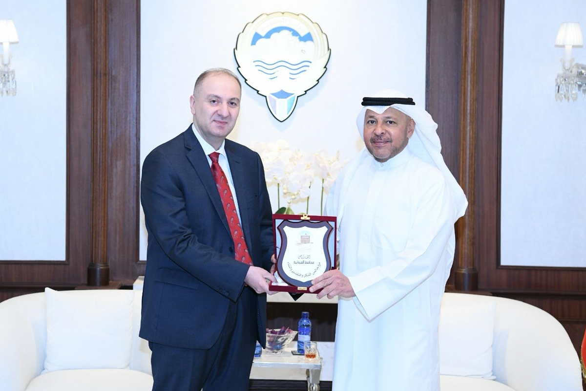 استقبل محافظ الفروانية الشيخ عذبي الناصر في مكتبه بالمحافظة، صباح اليوم، سفير جورجيا لدى الكويت، نوشريفان لومتاتدزي.