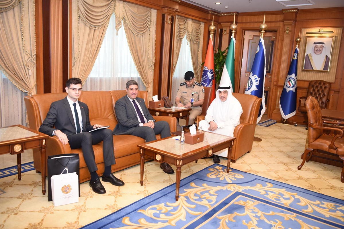 استقبل النائب الأول لرئيس مجلس الوزراء وزير الداخلية، الشيخ فهد اليوسف، في مكتبه بوزارة الداخلية، اليوم، سفير أرمينيا لدى البلاد د. أرسين أراكيليان.