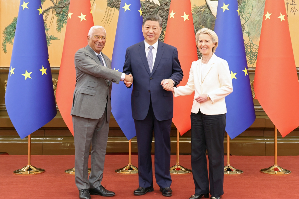 أكد الرئيس الصيني شي جين بينغ، خلال لقائه رئيس المجلس الأوروبي أنطونيو كوستا، ورئيسة المفوضية الأوروبية أورسولا فون دير لاين، في بكين، ضرورة التمسك بالانفتاح والتعاون بين الصين والاتحاد الأوروبي، وإدارة الخلافات بشكل مناسب، بما يسهم في تعزيز الاستقرار العالمي، وسط تحديات دولية متصاعدة.