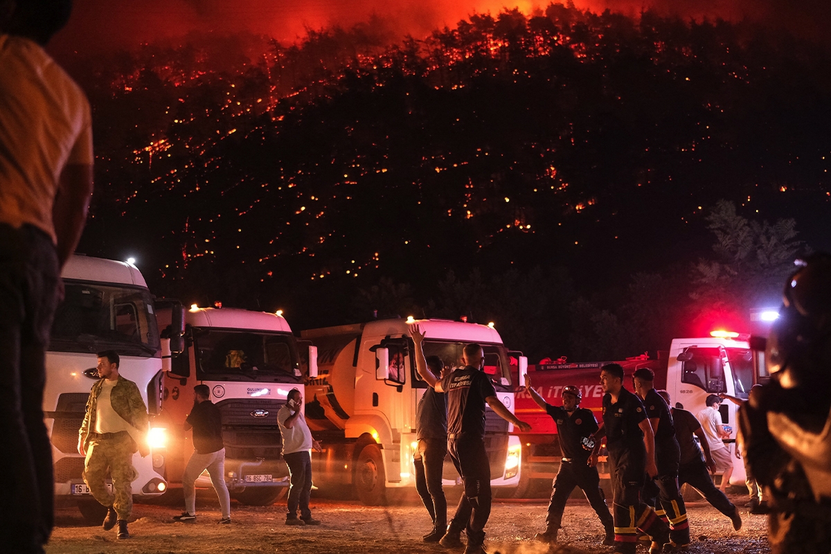 واندلعت مساء أمس، حرائق في غابات تقع بمدينتي أورهانيلي وغورسو في محافظة بورصة شمال غربي تركيا، امتدت إلى عدد من الأحياء السكنية، ما دفع السلطات المحلية إلى التدخل لمكافحة النيران والسيطرة عليها وسط موجة حر تشهدها تركيا.