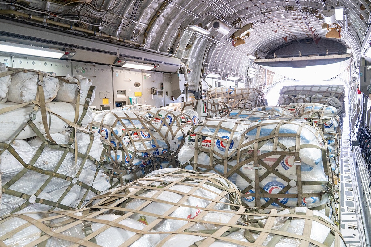 وقال رئيس مجلس إدارة الهلال الأحمر، خالد المغامس، لـ «كونا»، قبيل الإقلاع، إن «هذه الطائرة تضم مواد غذائية وايوائية ووسائل نقل، منها 5 أطنان قمح من إنتاج محمية الجيش الكويتي».