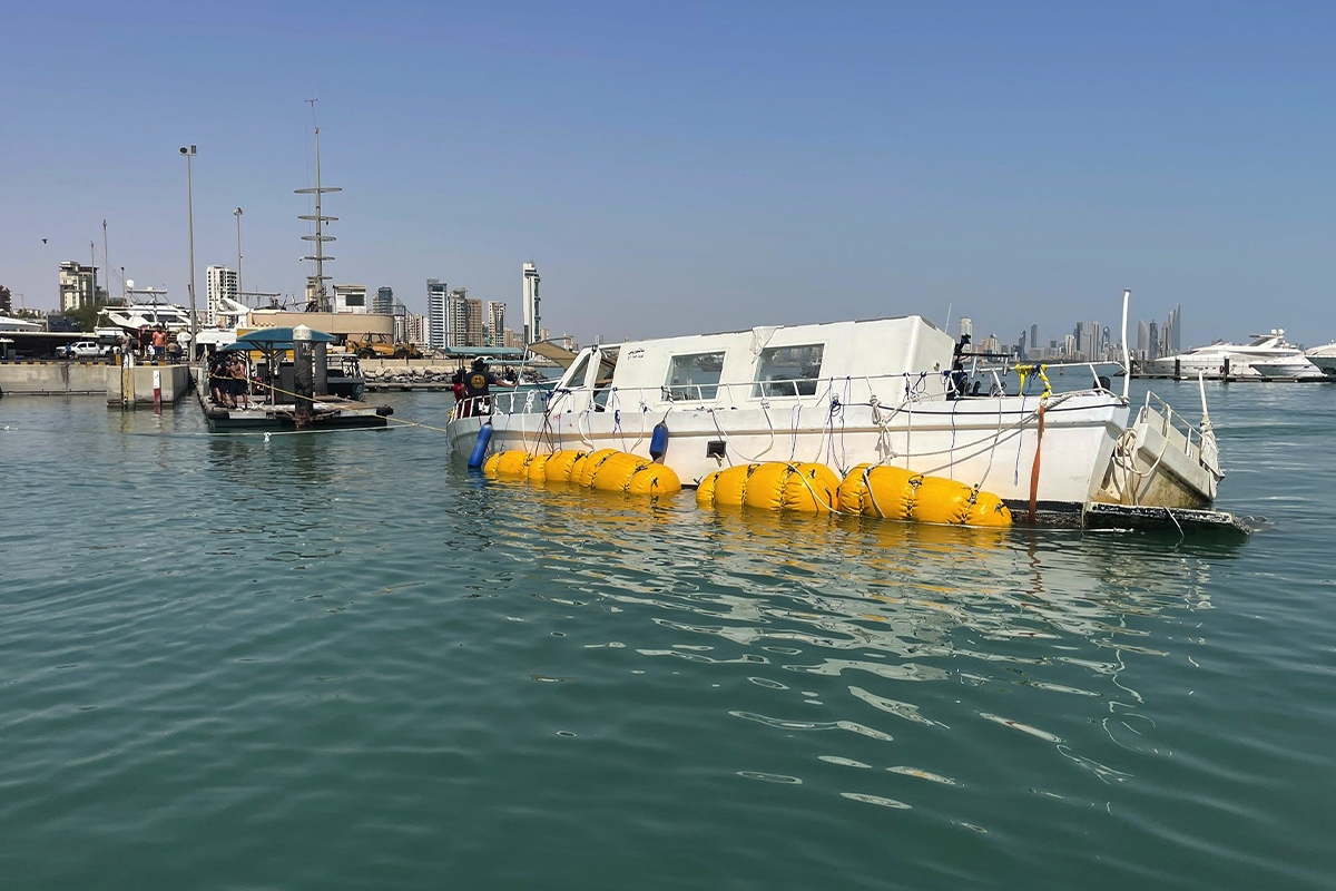 تمكن فريق الغوص الكويتي التابع للمبرة التطوعية البيئية من انتشال ورفع يخت غارق بطول 57 قدماً وزنته 30 طناً مقابل ساحل (السالمية) بعد تعرضه للجنوح بسبب الرياح الشديدة.