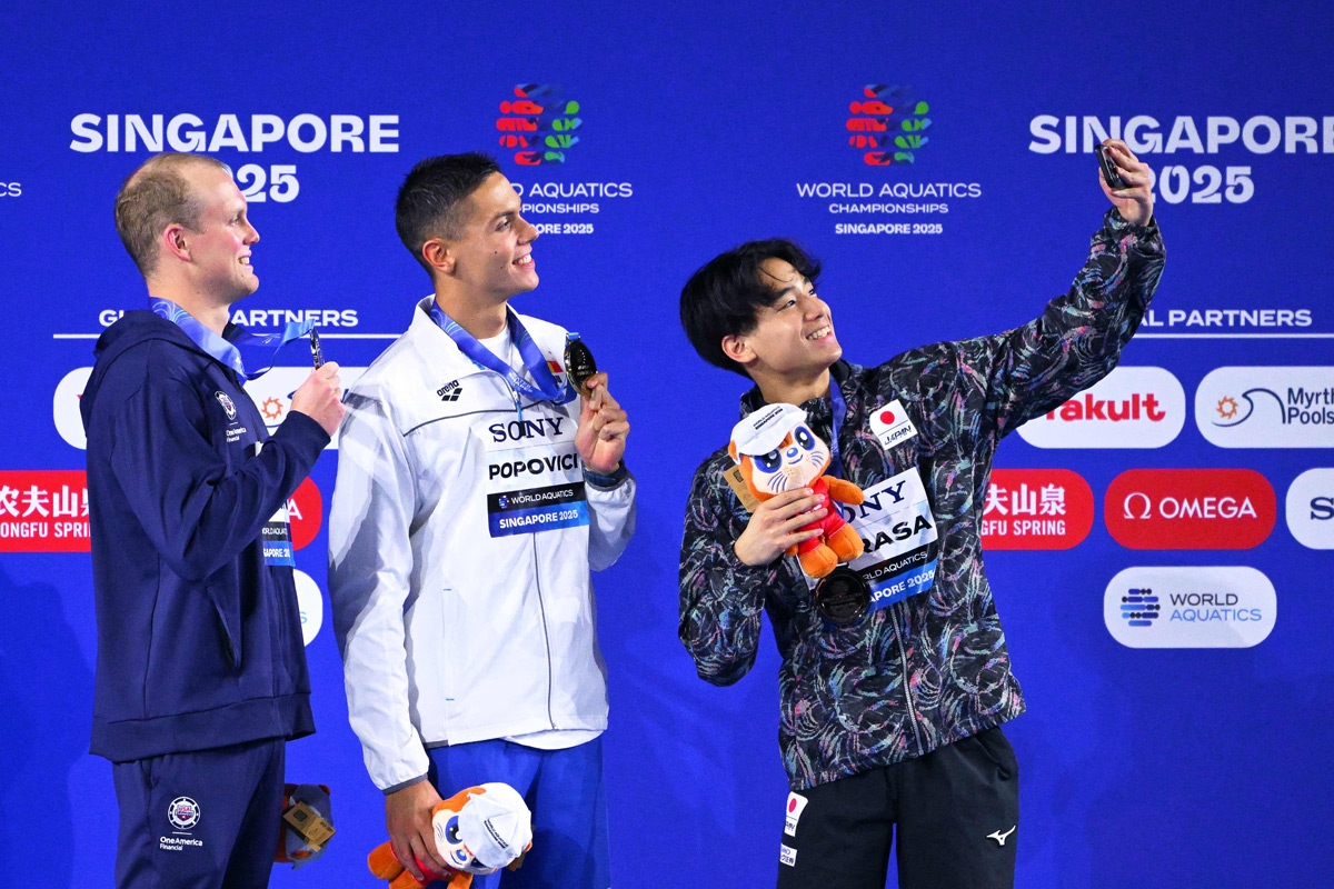 وفي سباق 200 متر حرة للرجال، قدّم الروماني دافيد بوبوفيتشي أداءً لافتاً، منتزعاً اللقب العالمي الثاني في مسيرته بزمن 1:43.53 دقيقة، متفوقاً على الأميركي لوك هوبسون والياباني تاتسويا موراسا.