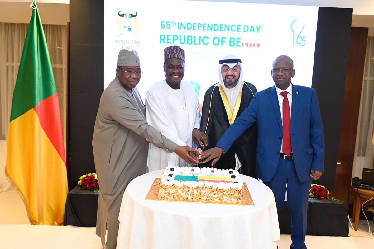 من ناحيته، قال سفير بنين لدى البلاد، باديرو دين أغيمون، إن الذكرى الخامسة والستين لاستقلال بلاده تشكل مناسبة وطنية مجيدة للاحتفال، ليس فقط بالحرية والسيادة، بل أيضاً بالتزام بنين الجماعي نحو مستقبل أكثر ازدهاراً وسلاماً وتعاوناً دولياً، مؤكدا أن جمهورية بنين الجديدة منفتحة وطموحة، ومستعدة لعقد شراكات استراتيجية مثمرة مع الدول الشقيقة والصديقة، وعلى رأسها الكويت.