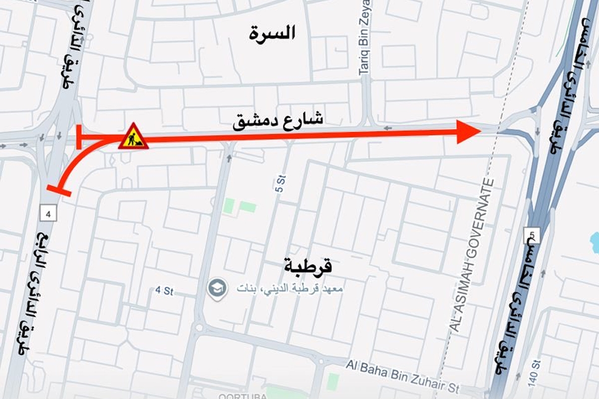 كما يشمل الإغلاق الحارة السريعة والحارة الوسطى من شارع دمشق، ابتداءً من تقاطع طريق الدائري الرابع باتجاه طريق الشيخ زايد بن سلطان آل نهيان (الدائري الخامس)، وذلك من يوم الأربعاء الموافق 6 أغسطس 2025 وحتى 20 أغسطس 2025.