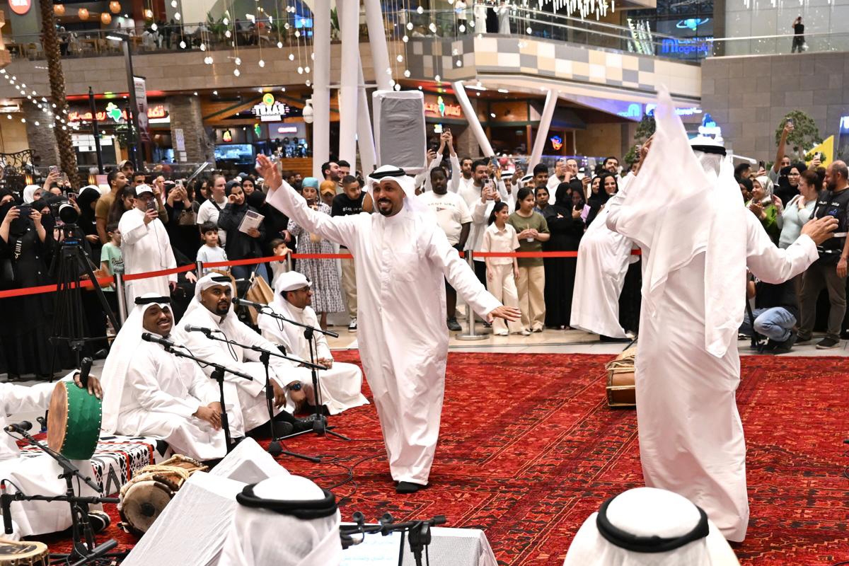 ومع دقات الطبول وأداء الفرقة المميَّز، تحوَّل المكان إلى ساحة احتفاءٍ بالتراث الغنائي الكويتي.