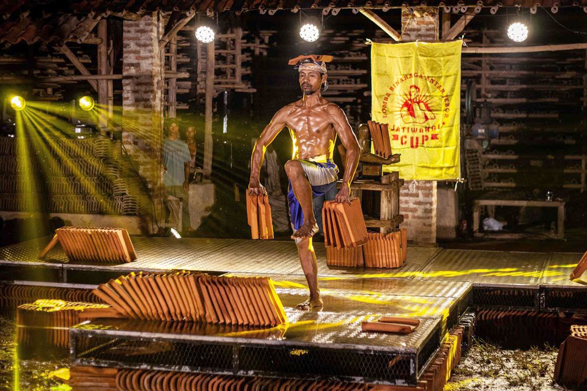 في بلدة جاتيوانجي الإندونيسية الشهيرة بإنتاج البلاط، والواقعة على مسافة نحو 200 كيلومتر شرق العاصمة جاكرتا، يستعرض عمال عضلاتهم أمام الجمهور، من خلال رفع أكوام من البلاط، كما لو كانوا يشاركون في بطولة «مستر يونيفرس» الدولية الشهيرة.