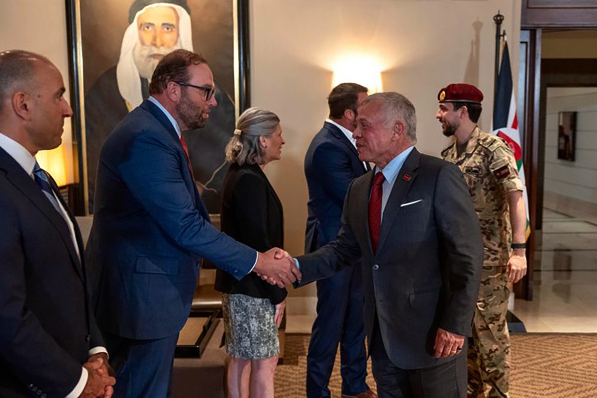 أكد العاهل الأردني الملك عبدالله الثاني اليوم الإثنين الرفض القاطع لتصريحات رئيس وزراء الاحتلال بنيامين نتنياهو حول رؤية «إسرائيل الكبرى» المزعزمة والإجراءات الأحادية بالضفة الغربية ومنها الاستيطان الذي يشكل خرقاً للقانون الدولي واعتداء على حق الشعب الفلسطيني في إقامة دولته المستقلة.