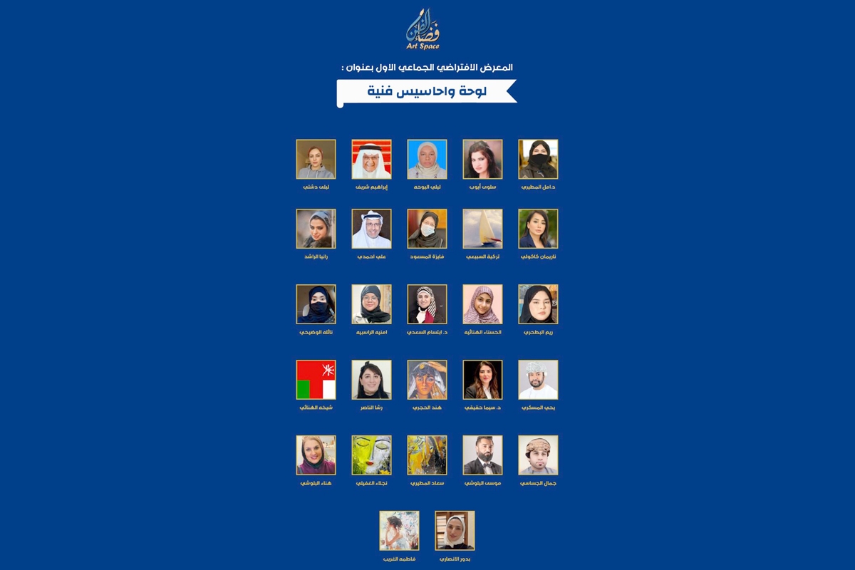 أعلنت منصة «فضاء الفن» تدشين معرضها الافتراضي الأول بعنوان «لوحة وأحاسيس فنية»، الذي يضم مجموعة مختارة من الأعمال الفنية المعاصرة لفنانين من مختلف دول العالم.