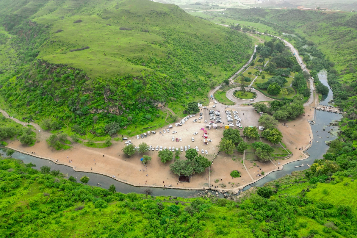 ثم واصلنا المسيرة إلى المحطة الأجمل في العالم: وادي دربات، حيث الشلالات والبحيرات والكهوف المميزة، فكانت ذروة المتعة. إنه بحق المكان الأجمل ليس في عمان فقط، بل ربما في العالم أجمع، حيث الشلالات تهوي من أعالي الجبال، والبحيرات الزرقاء تعكس الخضرة من حولها، لتصنع مشهداً لا يمكن للعين أن تملّه، وبعد راحة قصيرة في منتجع الفنار محل إقامة الوفد الإعلامي، حيث المكان الأنسب للاستجمام والمشيد على مساحة هائلة، ويضم أكبر عدد غرف بنحو 588 غرفة، انطلقنا في المساء الى آثار خوروري بمنتزه سمهرم.