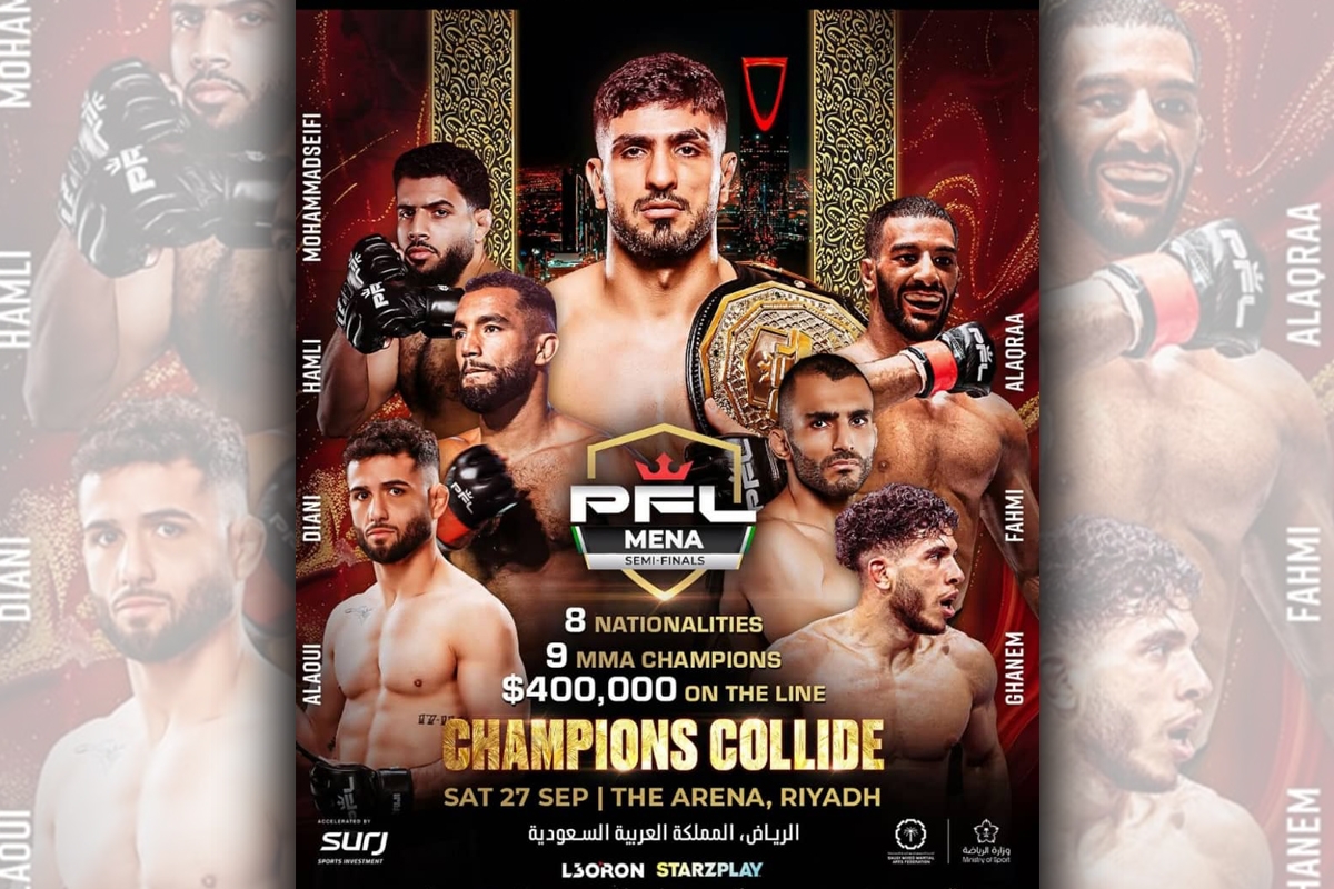 أعلنت رابطة الدوري الاحترافي للمقاتلين (PFL) إقامة نصف نهائي بطولة الشرق الأوسط وشمال إفريقيا تحت شعار «مواجهة الأبطال»، يوم السبت 27 سبتمبر في صالة ذا أرينا بالعاصمة الرياض، بمشاركة نخبة من أبرز المقاتلين في المنطقة.