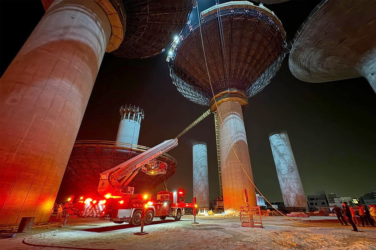 وأشارت المصادر إلى أن فريقا من الوزارة انتقل على الفور إلى موقع الحادث لمتابعة عمليات الإطفاء، التي تمت بمساعدة الفريق الفني للمقاول، وذلك للارتفاع الكبير للخزان الذي نشب به الحريق، مبينة أن الحريق استمر حتى الساعة الحادية عشرة مساء تقريبا منذ اندلاعه عند نحو الساعة السادسة، وتمت السيطرة عليه من خلال الصعود إلى خزان آخر.