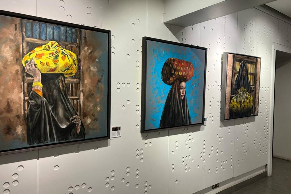 من جهتها، ذكرت سارة شير أنها حاولت أن تقدم التراث بمنظور جديد، من خلال 27 عملا فنيا، استخدمت فيها الألوان الزيتية، مشيرة إلى أن أعمالها مستوحاة من صور واقعية لبعض المصورين.
