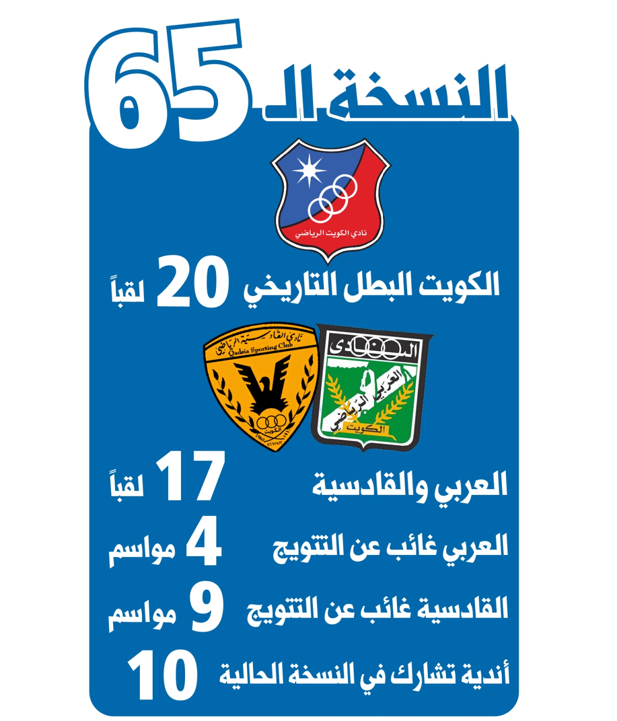 • محترفو القادسية هم: المصري محمود كهربا والكونغولي كيبانو، وفيكتور لكحل، وبوشار إلى جانب محمد الصولة وبقيادة المدرب نبيل معلول.