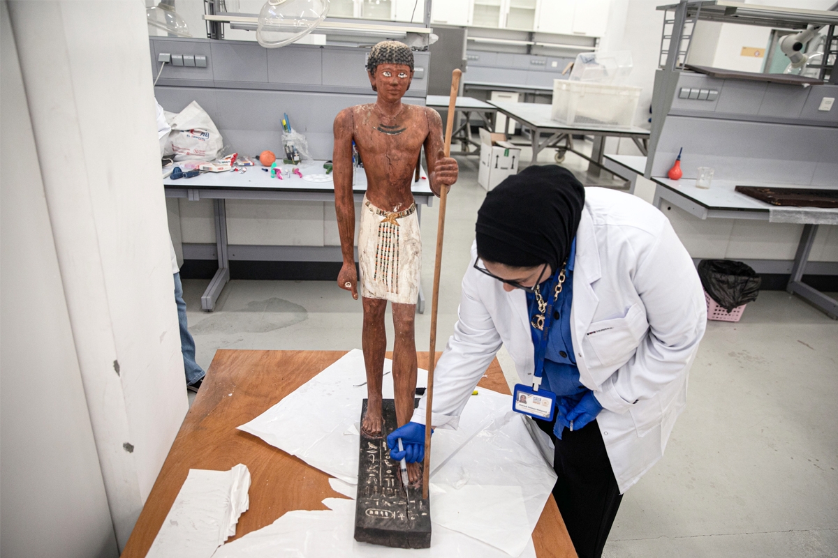 بينما يستمتع الزوار بمشاهدة الكنوز الأثرية في قاعات المتحف القومي للحضارة المصرية بالطابق العلوي، يعمل في الطابق السفلي من المتحف مرممون يرتدون معاطف بيضاء ناصعة أشبه بالجراحين، لإعادة الحياة إلى قطع أثرية يعود تاريخ معظمها إلى آلاف السنين.