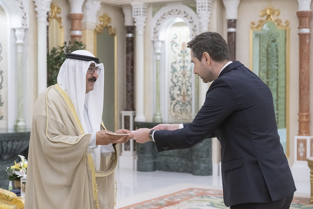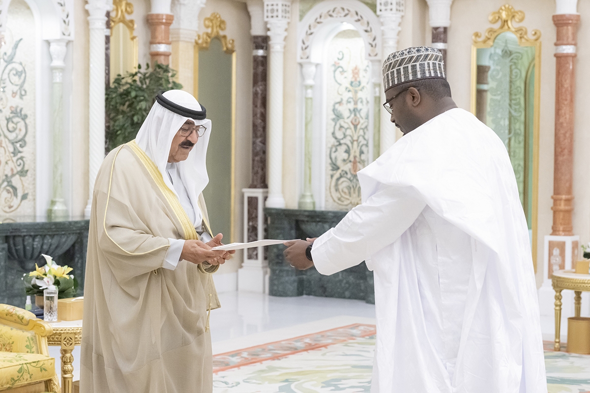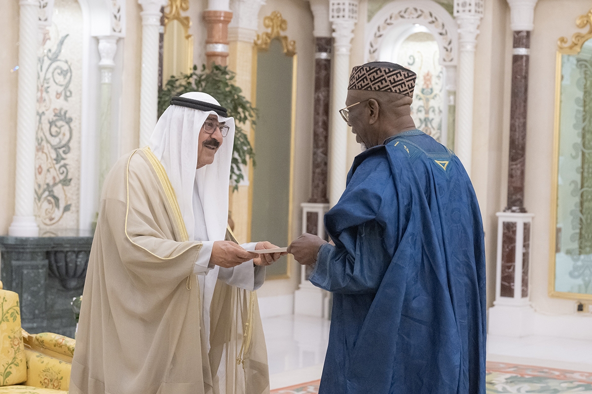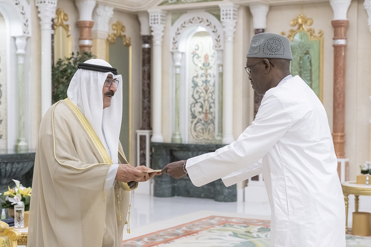 احتفل في قصر بيان، صباح اليوم، بتسلّم سمو أمير البلاد الشيخ مشعل الأحمد، أوراق اعتماد كل من د. آدم عبده حسن سفيراً للنيجر، ود. براهيما دياكيتي كابا سفيراً لليبيريا، وباديرو أغيمون سفيراً لبنين، وميشال جوليوا سفيراً لبولندا، وحسن سوغو سفيراً للسنغال، وذلك سفراء لبلادهم لدى الكويت.