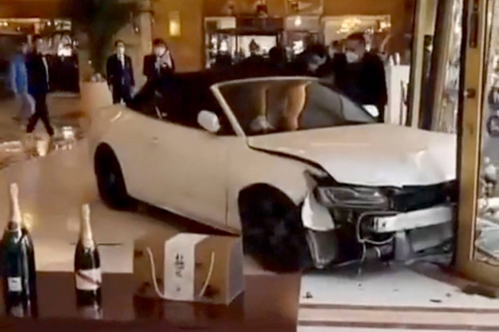 وانتشرت في مواقع التواصل مقاطع فيديو، نقلتها «العربية نت» اليوم، تظهر سيارة بيضاء يحاول سائقها تحطيم مدخل فندق «سنترال هوتيل» في شنغهاي قبل أن يدخل البهو.