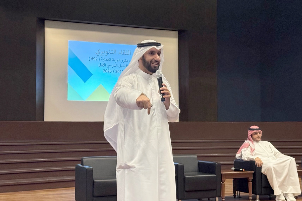 وهنَّأ نائب رئيس قسم التربية العملية د. فهيد الهيلم، الطلبة على وصولهم لمرحلة التدريب الميداني، مبيناً جميع التحديات التي ستواجه طالب الميداني، مشدداً على ضرورة أن يلتزم الطالب باللوائح والنظم المعمول بها في وزارة التربية، وأجاب عن كل الأسئلة.