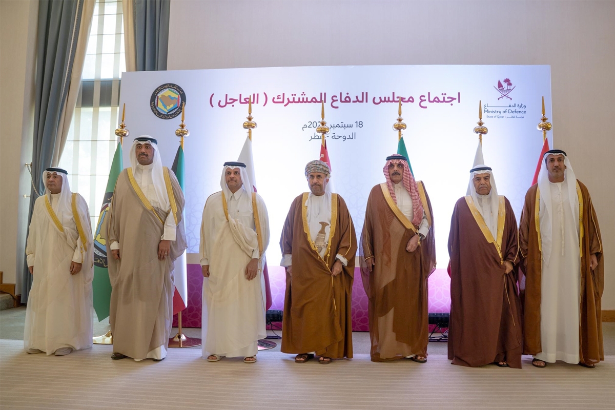 وعقد مجلس الدفاع المشترك دورته الاستثنائية في الدوحة، بحضور وزير الدفاع الكويتي الشيخ عبدالله السالم، ورئاسة نائب رئيس مجلس الوزراء وزير الدولة لشؤون الدفاع القطري، الشيخ سعود بن عبدالرحمن، ونظرائهما في الإمارات محمد المزروعي، والبحرين عبدالله النعيمي، وعمان محمد الزعابي، ونائب وزير الدفاع السعودي عبدالرحمن بن عياف، والأمين العام لمجلس التعاون جاسم محمد البديوي، تنفيذاً لتوجيهات قادة دول مجلس التعاون لتقييم الوضع الدفاعي الخليجي ومصادر التهديد في ضوء العدوان الإسرائيلي على قطر، وتوجيه القيادة العسكرية الموحدة لاتخاذ الإجراءات التنفيذية اللازمة لتفعيل آليات الدفاع المشترك وقدرات الردع الخليجية.
