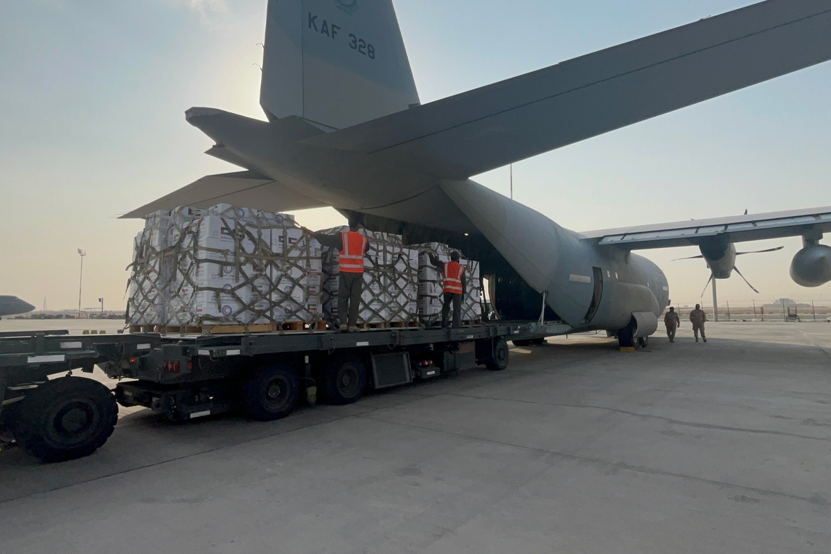 وتأتي هذه الرحلات الإغاثية لمساعدة الأشقاء الفلسطينيين ضمن حملة «فزعة لغزة» بتنظيم من جمعية الهلال الأحمر الكويتي، بالتعاون مع جهات خيرية كويتية والتنسيق مع وزارات الشؤون الاجتماعية والخارجية والدفاع ممثلة بالقوة الجوية الكويتية.