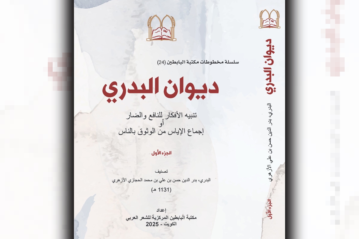 أصدرت مكتبة البابطين المركزية كتاباً جديداً هو «ديوان البدري» للأديب الشاعر بدر الدين حسن بن علي بن محمد البدري الحجازي الأزهري (1123هـ - 1718م)، وذلك ضمن «سلسلة المخطوطات»، التي تثري بها المكتبة العربية وتزود من خلالها القارئ العربي بباقة من أهم مخطوطات التراث العربي.