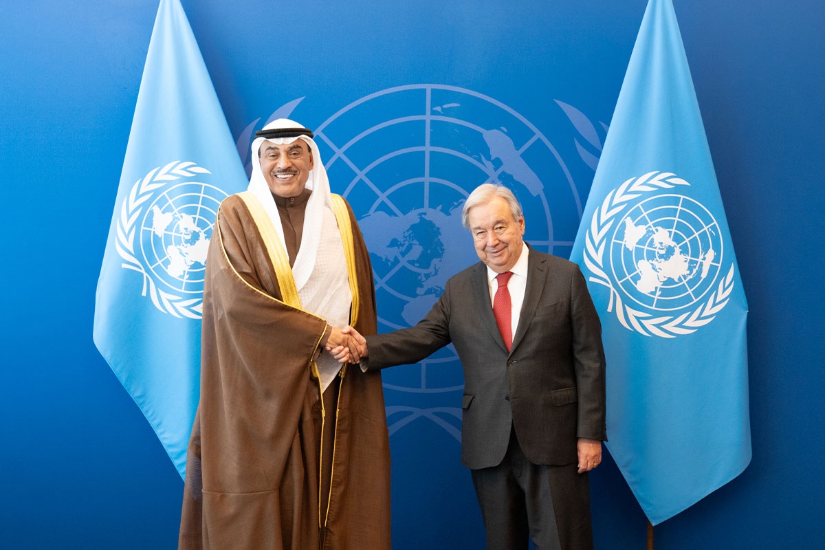 التقى ممثل صاحب السمو أمير البلاد الشيخ مشعل الأحمد، سمو ولي العهد الشيخ صباح الخالد، اليوم، الأمين العام للأمم المتحدة أنطونيو غوتيريش، على هامش أعمال الدورة الـ80 للجمعية العامة للأمم المتحدة.