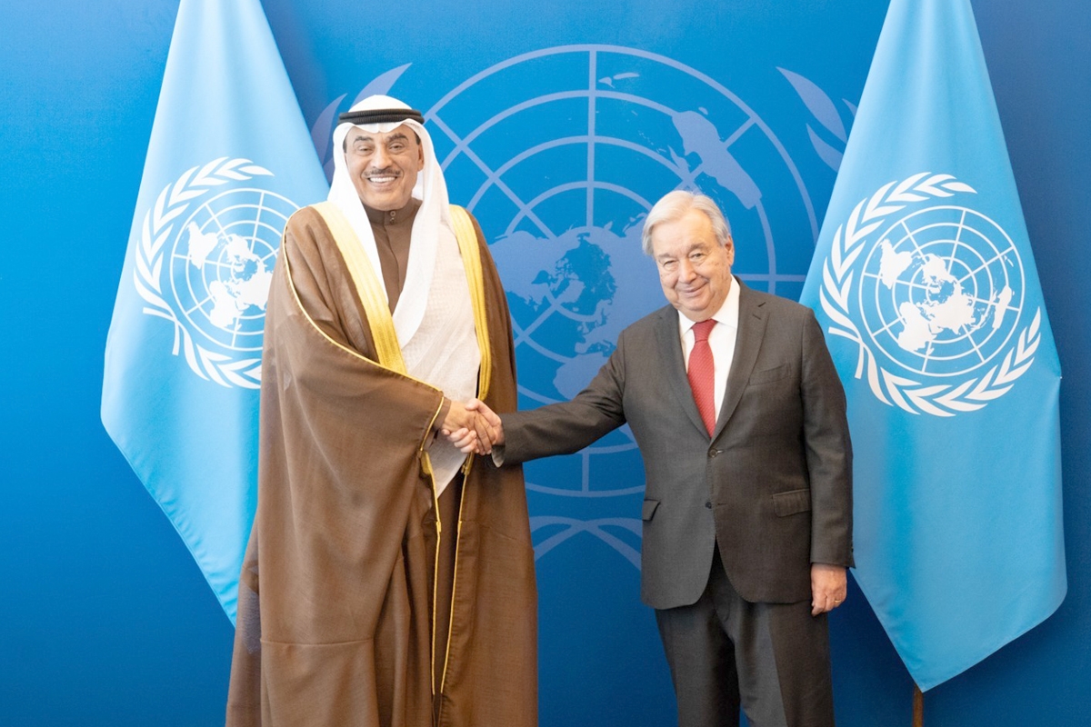 التقى ممثل صاحب السمو أمير البلاد، الشيخ مشعل الأحمد، سمو ولي العهد الشيخ صباح الخالد، الأمين العام للأمم المتحدة أنطونيو غوتيريش، وذلك على هامش أعمال الدورة الـ 80 للجمعية العامة للأمم المتحدة.