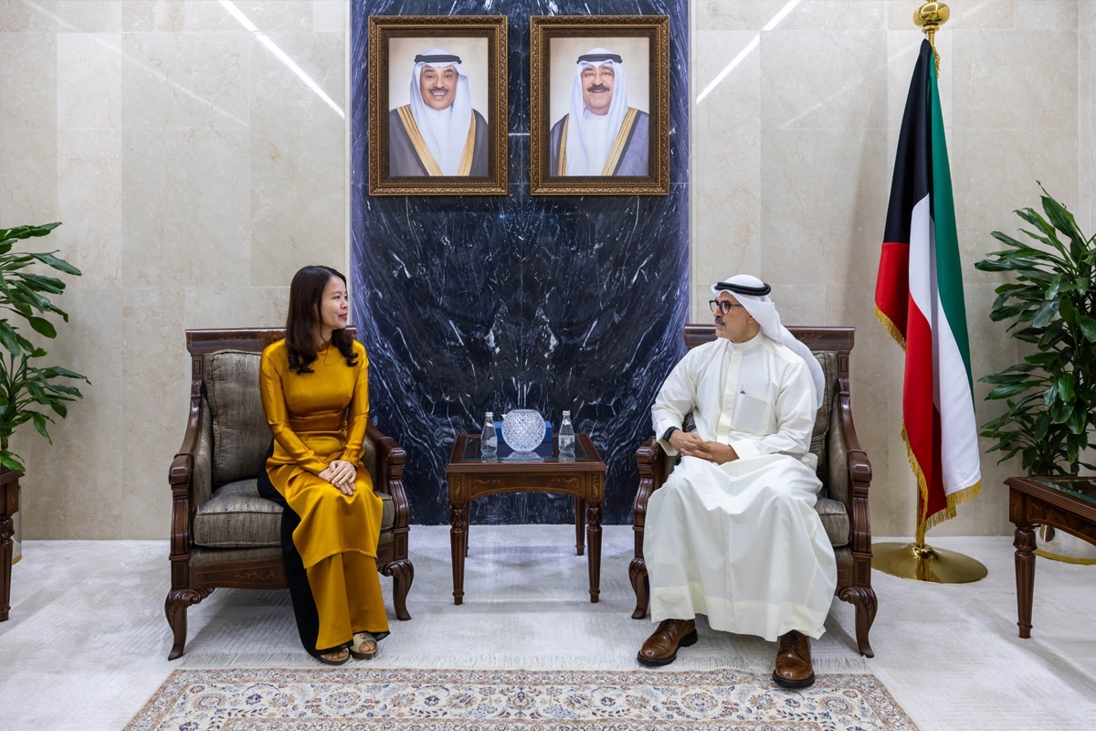 استقبل نائب وزير الخارجية، السفير الشيخ جراح الجابر، اليوم، نائبة وزير الخارجية في فيتنام، نغوين مينه هانغ، حيث تم بحث سبل توطيد العلاقات بين البلدين الصديقين في جميع المجالات، إضافة إلى المواضيع ذات الاهتمام المشترك.