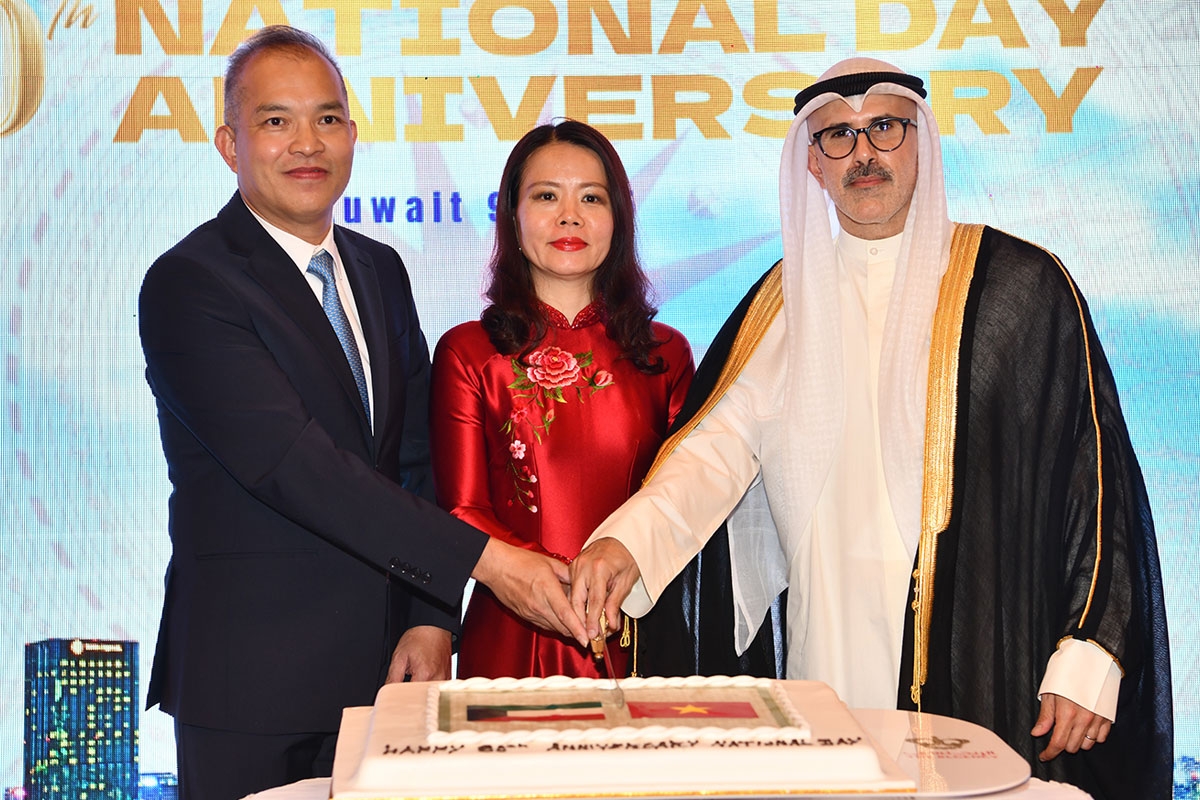وفي كلمة ألقاها خلال احتفالية بمناسبة الذكرى الـ 80 لليوم الوطني الفيتنامي، حضرها نائب وزير الخارجية، السفير الشيخ جراح الجابر، ونائبة وزير الخارجية للشؤون السياسية والدبلوماسية بفيتنام، السفيرة نغوين هانغ، ولفيف من رؤساء البعثات الدبلوماسية والمنظمات الدولية المعتمدة لدى البلاد، قال سفير فيتنام: «الكويت لم تكن مجرد شريك دبلوماسي مبكّر، بل كانت ولا تزال صديقاً مخلصاً قدّم دعماً صادقاً لفيتنام في أصعب المراحل، واستمر في مؤازرتنا بمسيرة التنمية والسلام»، مشيداً بما قدمته القيادة الكويتية ممثلة بسمو أمير البلاد، وسمو ولي العهد، وسمو رئيس مجلس الوزراء من دعم ثابت وحماس للتعاون الثنائي.