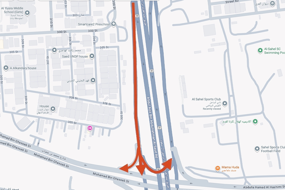إغلاق تقاطع نادي الساحل مع الرامب القادم من فهد الأحمد باتجاه الفحيحيل