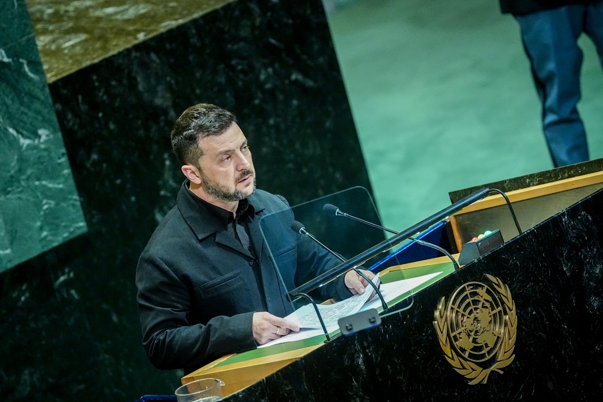 وقال زيلينسكي في خطابه أمام الجمعية العامة للأمم المتحدة «إذا ما كانت دولة تريد السلام، يجب أن تعمل على شراء الأسلحة. هذا مروع، لكنه الواقع. ليس القانون الدولي وليس التعاون. إنها الأسلحة التي تقرر من يبقى على قيد الحياة».